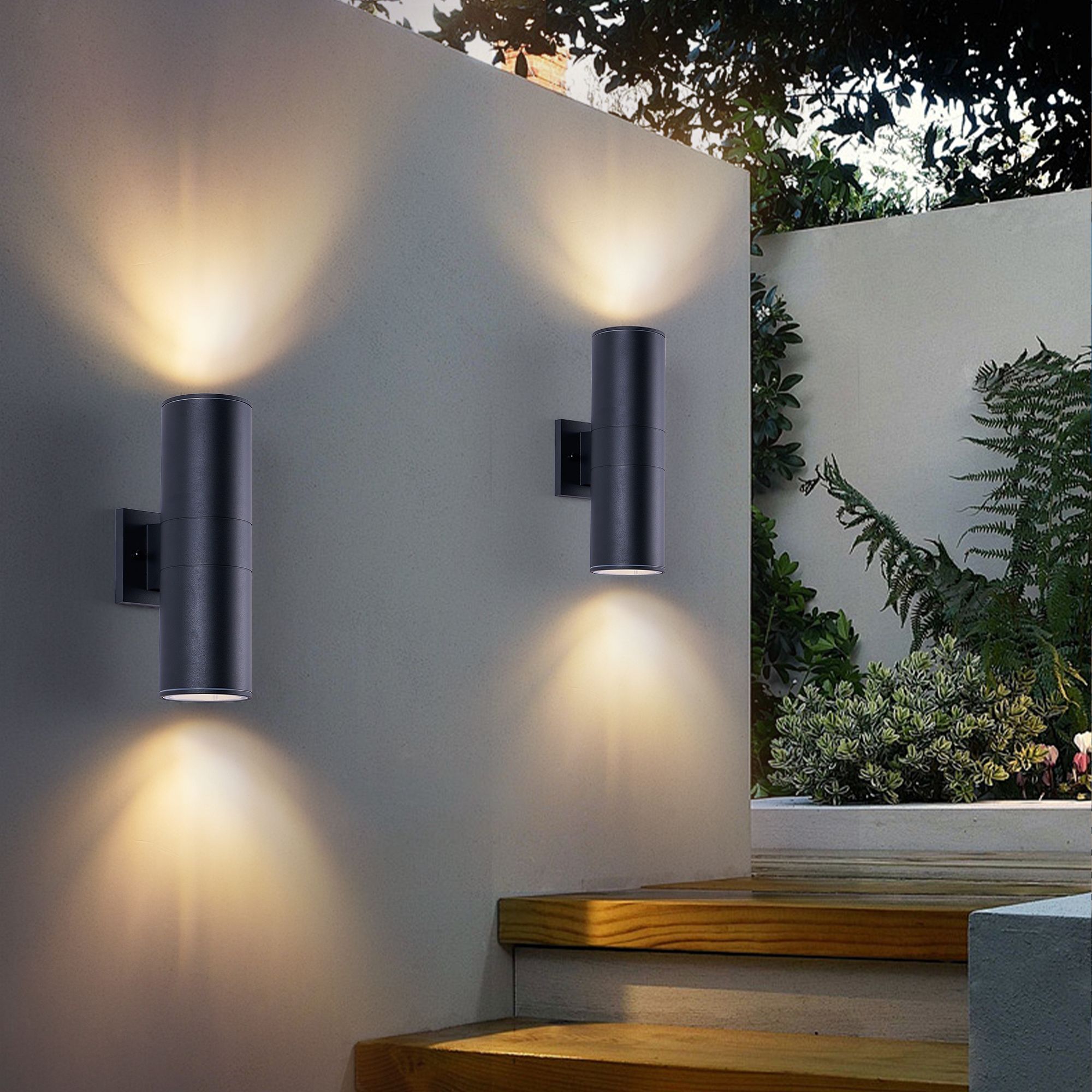 Upgrade your outdoor space with this sleek, contemporary 2-pack wall sconce—designed to blend style and durability for year-round use.