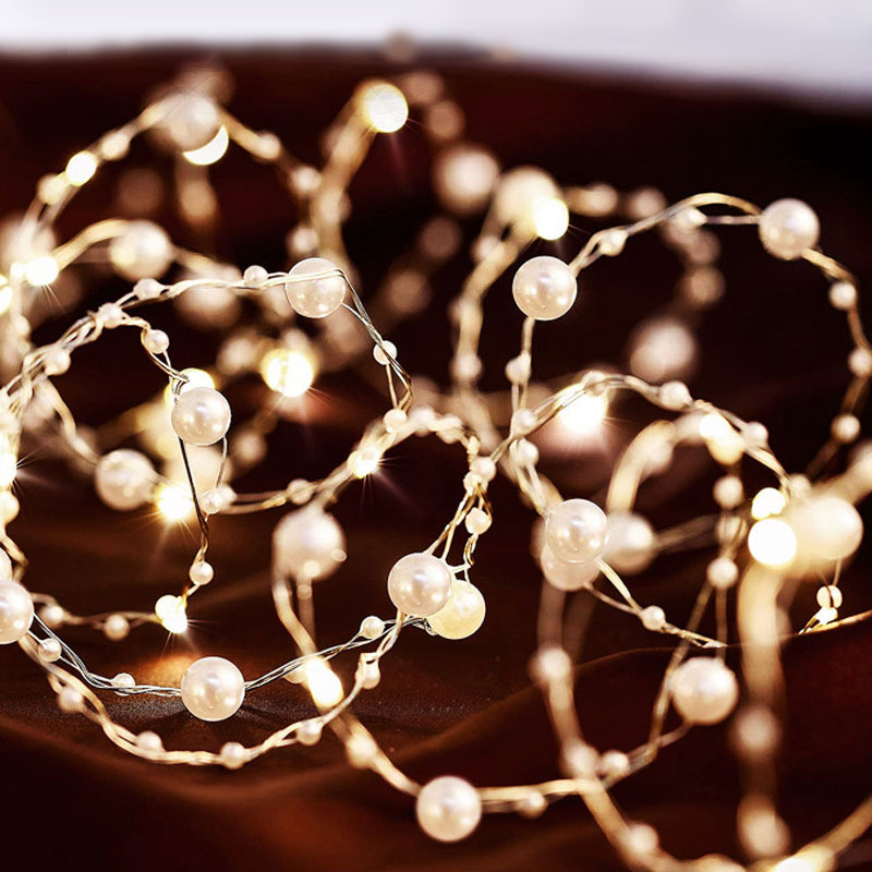 Home > 2/5/10m Pearl Wire Copper String Light Christmas Valentine Wedding Decoration for Home Wedding Party Mariage Garland Decoration