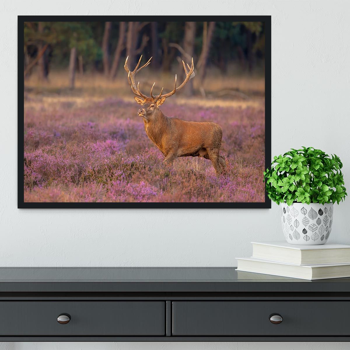 Male red deer Cervus elaphus with antlers during mating season Framed Print Male red deer Cervus elaphus with antlers during mating season Framed Print